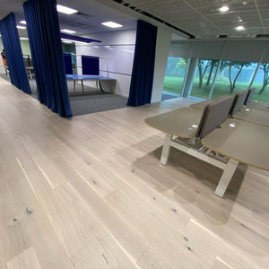 Ashton & Rose Rydal flooring, a light and airy flooring option that brings a refreshing brightness to interiors. The smooth matte finish adds to its elegant appeal, while the 1-strip pattern ensures a clean, seamless aesthetic across any room. With its easy-to-install click system, this floor offers both beauty and practicality.