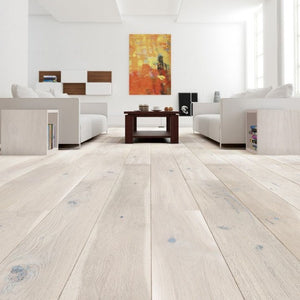 Ashton and Rose Lonsdale engineered wood flooring, a captivating blend of elegance and quaint warmth. This flooring features a soft, cloud-kissed oak colour with subtle variations in tone and texture, creating a serene and inviting atmosphere.